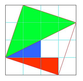 Dieses ist eines von sehr vielen Bildern, die zeigen, dass es stimmt, dass also arctan(1) = arctan(1/2) + arctan(1/3) ist.
