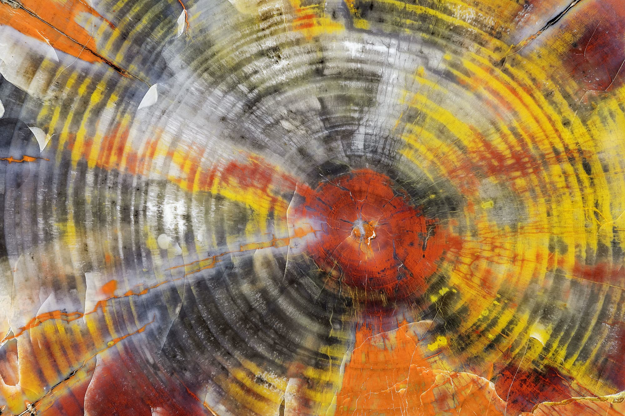 In Arizona dagegen, etwa im Petrified-Forest-Nationalpark, ist es verboten, jegliches versteinerte Holzstück aufzulesen. Diese seit 1906 geschützte Region liegt im Südosten der USA und weist ausgedehnte Fundstätten von Fossilien auf. Von hier stammen die schönsten farbigen Baumscheiben wie das Regenbogenholz mit einem Spiel intensiver Rottöne. Andere Färbungen entstehen durch Chromoxid, das grün und blau schimmernde Kolorite erzeugt.