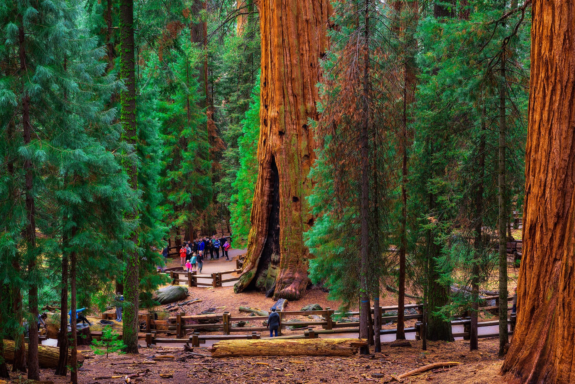 Riesenmammutbäume sind weder die ältesten noch die höchsten Bäume, dafür erreichen sie nach bisherigem Wissensstand das größte Holzvolumen: Ein als General Sherman bezeichnetes Exemplar hat ein Volumen von fast 1500 Kubikmetern - und damit mehr als jeder andere bekannte Baum. Bei einem geschätzten Alter von 1900 bis 2500 Jahren ist es knapp 84 Meter hoch, in Brusthöhe hat sein Stamm einen Durchmesser von 8,25 Metern. Womöglich ist »General Sherman« nur ein Relikt einer noch glorreicheren Vergangenheit. Denn wie viele andere Baumriesen fielen auch zahlreiche Riesenmammutbäume Axt und Säge zum Opfer: Große Teile des Bestands wurden im 19. Jahrhundert bei der Eroberung des US-amerikanischen Westens abgeholzt - darunter ein Exemplar namens »Vater des Waldes«, das sogar 135 Meter hoch und 12 Meter dick gewesen sein soll. Solchen historischen Angaben sollte man jedoch nicht immer trauen. Heute gibt es Riesenmammutbäume nur noch in rund 70 Hainen in der kalifornischen Sierra Nevada mit einer Gesamtfläche von rund 14 000 Hektar. Sie stehen größtenteils unter Schutz.