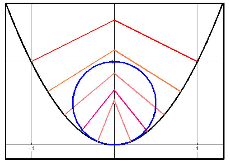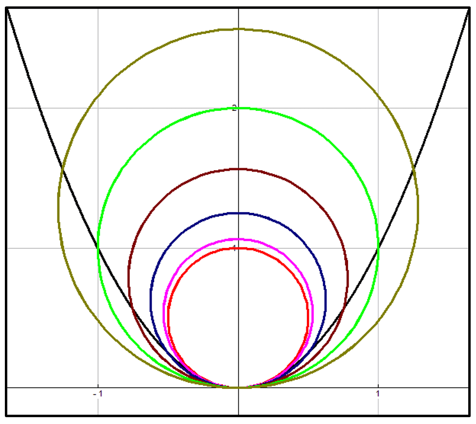 In einem posthum erschienenen Beitrag zeigt Taylor, dass die Newton'sche Methode zur Bestimmung der Krümmung einer Kurve äquivalent ist zu dem von ihm entwickelten Verfahren. Während Newton den Mittelpunkt eines Krümmungskreises als Grenzwert der Schnittpunkte von Kurven-Normalen definiert (oben), betrachtet Taylor Kreise durch drei Kurvenpunkte, die im Grenzfall zusammenfallen (unten).