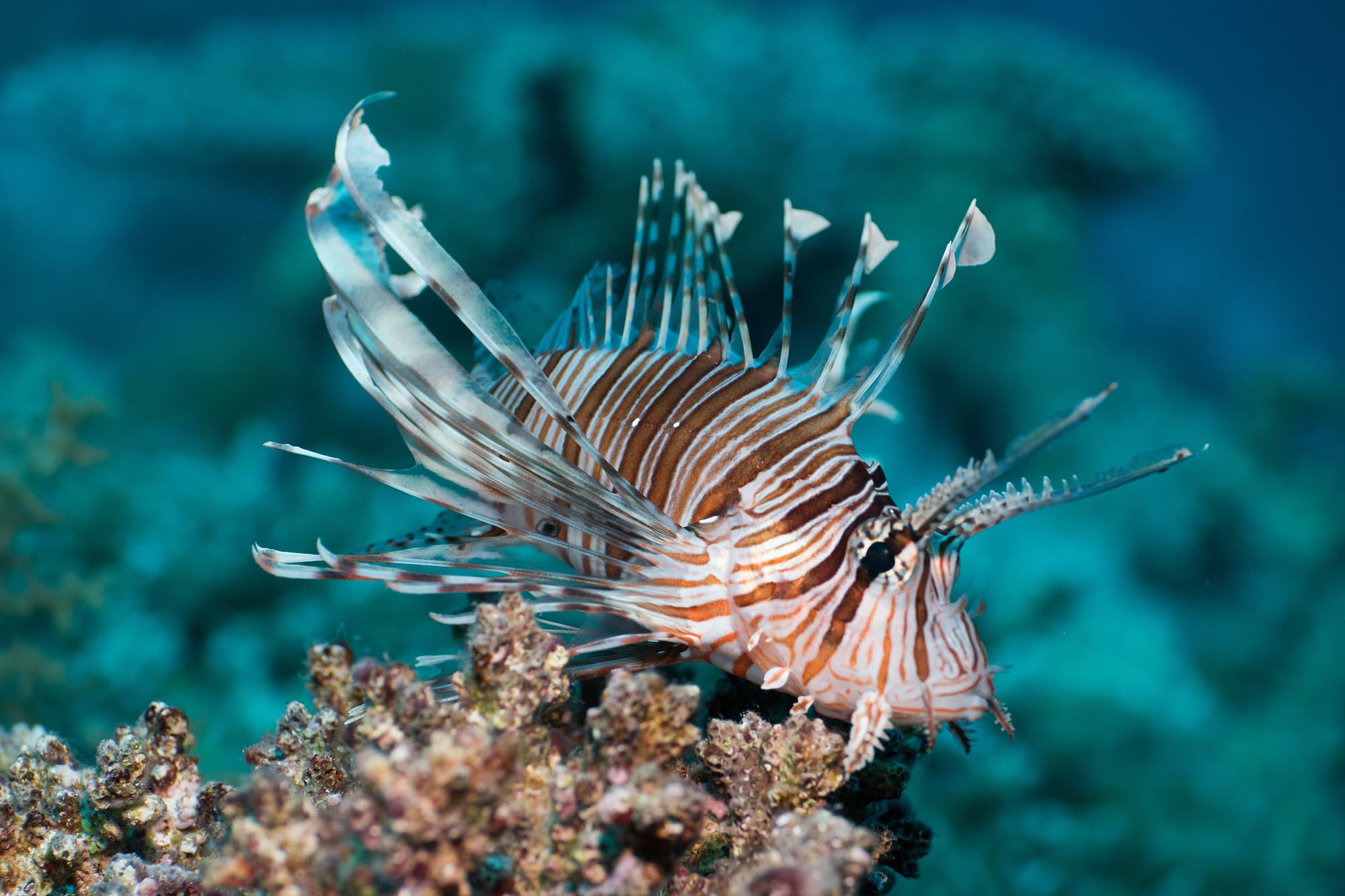 Eigentlich sind Rotfeuerfische harmlose und zurückhaltende Gesellen – doch wer klug ist, belästigt sie nicht. Die Arten aus der Gruppe der Pteroinae gehören zu den giftigsten Fischen, ihr Stich ist zwar nicht tödlich, aber oft höchst unangenehm. Ihre Stacheln an Rücken- und Bauchflossen enthalten Giftdrüsen, die eine Mischung aus Proteinen und kleinen Molekülen abgeben, sobald die Hülle um den Stachel herabgedrückt wird. Der Giftcocktail verursacht nicht nur extreme Schmerzen, sondern auch Lähmungen bis hin zu Atem- und Herzproblemen und in schweren Fällen Kreislaufkollaps. Das Gift enthält unter anderem den Neurotransmitter Azetylcholin, der die Synapsen des Nervensystems überstimuliert – der Effekt entspricht jenem von Nervengasen wie Sarin, allerdings nur lokal.