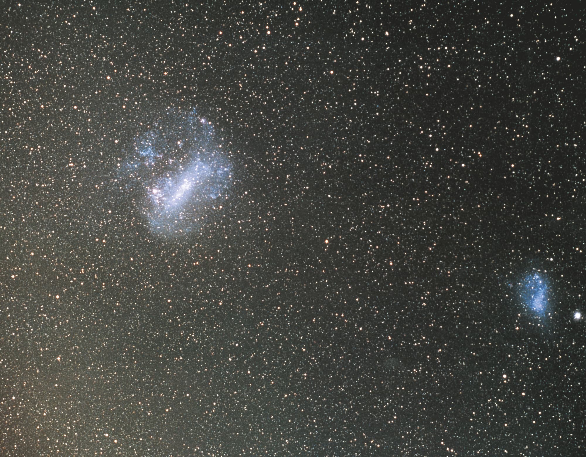 Die 11 x 9 Grad große LMC besitzt eine absolute Blauhelligkeit von –18,5 mag. Sie leuchtet also nur um 2 mag schwächer als das Milchstraßensystem. Die Absoluthelligkeit der 5 x 3 Grad messenden SMC beträgt –17,4 mag. Es ist also nicht richtig, die LMC und SMC als Zwerggalaxien zu klassifizieren, wie es hin und wieder geschieht. Als Zwerggalaxien werden im Allgemeinen Galaxien mit Absoluthelligkeiten schwächer als –16 mag bezeichnet.