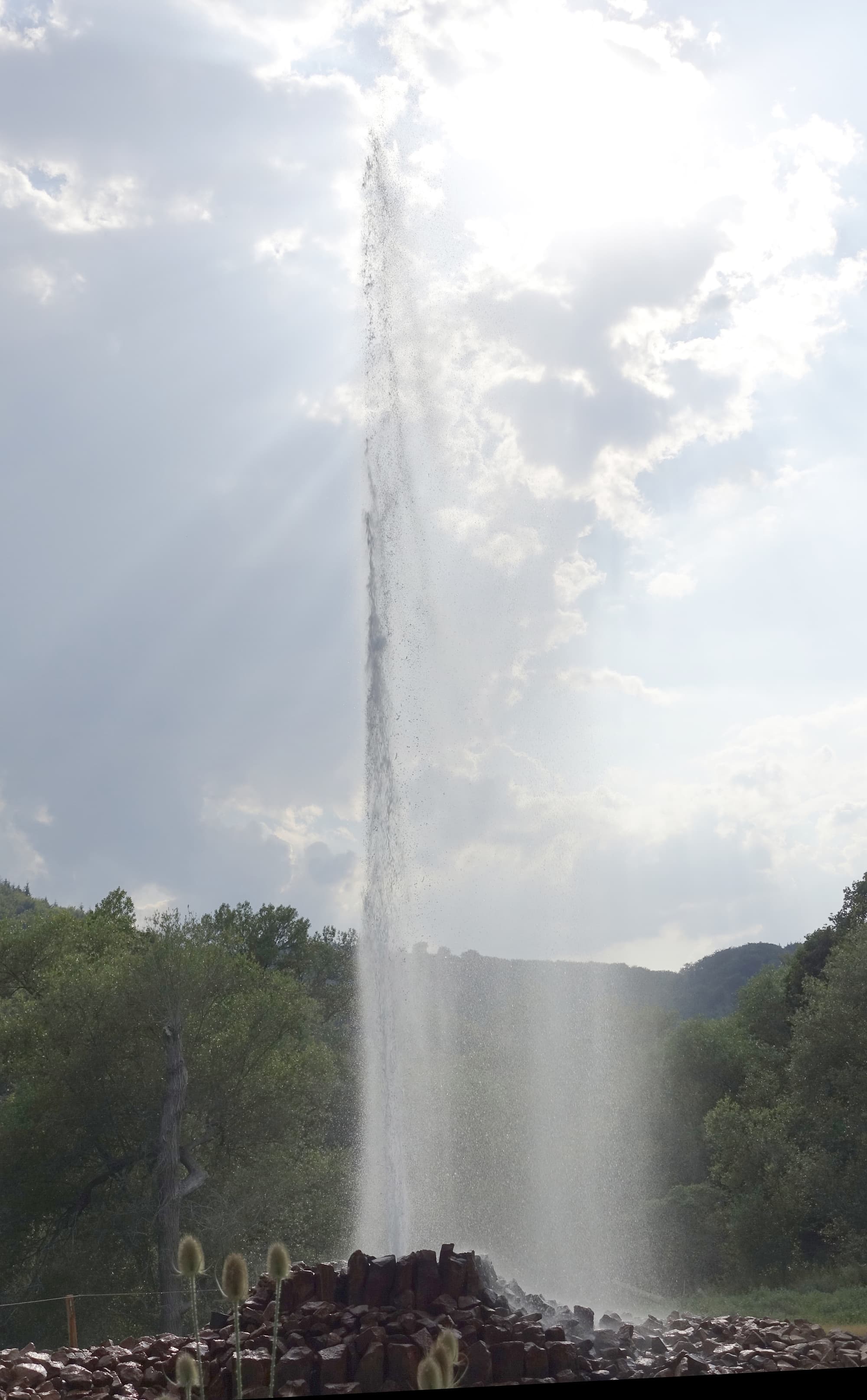 Der Ausbruch dieses Kaltwassergeysirs dauert etwa acht Minuten. Dabei erhebt sich die Wasserfontäne bis zu einer Höhe von 60 Metern. Danach sackt sie in sich zusammen; oberflächlich ist die Aktivität zu Ende. Doch tief im Inneren füllt sich der entleerte Brunnen allmählich wieder mit kohlendioxidhaltigem Wasser, und nach rund 100 Minuten herrschen abermals die richtigen Bedingungen für ein erneutes Aufwallen. Es sei denn, man verschließt den Brunnen und verhindert das Überlaufen – dafür sorgt außerhalb der Besuchszeiten eine entsprechende Vorrichtung.