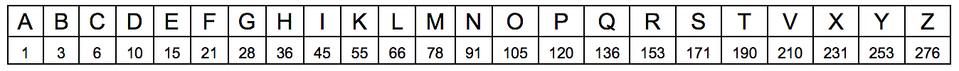Da bei römischen Zahlzeichen nur wenige Buchstaben des Alphabets berücksichtigt werden, untersucht Stifel auch eine Zuordnung mithilfe der Dreieckszahlen: