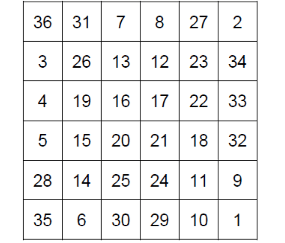 Die Zahl 666 entdeckt er auch in einem magischen Quadrat der Ordnung sechs als Summe der natürlichen Zahlen von 1 bis 36.