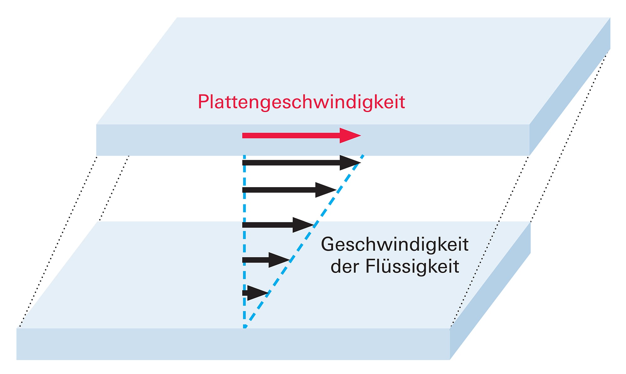 Eine Flüssigkeit zwischen den Flächen kann die Gleitreibung vermindern. Wird sie so dick aufgetragen, dass die Festkörper sich nicht mehr direkt berühren, reduziert das die Gleitreibungskraft drastisch. Dann ruft nämlich die relative Bewegung der beiden Objekte zueinander eine Bewegung in der Flüssigkeit hervor – die Gleitreibungskraft muss nicht mehr die Rauigkeit oder Klebrigkeit der eigentlichen Oberflächen überwinden, sondern beschränkt sich darauf, die Schmierflüssigkeit zu »scheren«. Unter dem Begriff verstehen Physiker eine parallele Verschiebung gedachter Flüssigkeitsschichten. Dabei bleibt die jeweils an den Festkörper angrenzende Lage relativ zu diesem in Ruhe, und die Bereiche dazwischen driften allmählich auseinander.