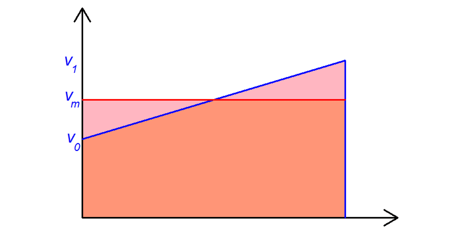 - Wird ein Körper in einem gewissen Zeitintervall gleichmäßig von einer Geschwindigkeit \(v_0\) auf eine Geschwindigkeit \(v_1\) beschleunigt, dann legt der Körper in diesem Zeitintervall denselben Weg zurück wie ein Körper, der sich mit der Geschwindigkeit \(\frac{1}{2}\cdot(v_0+v_1)\) bewegt.