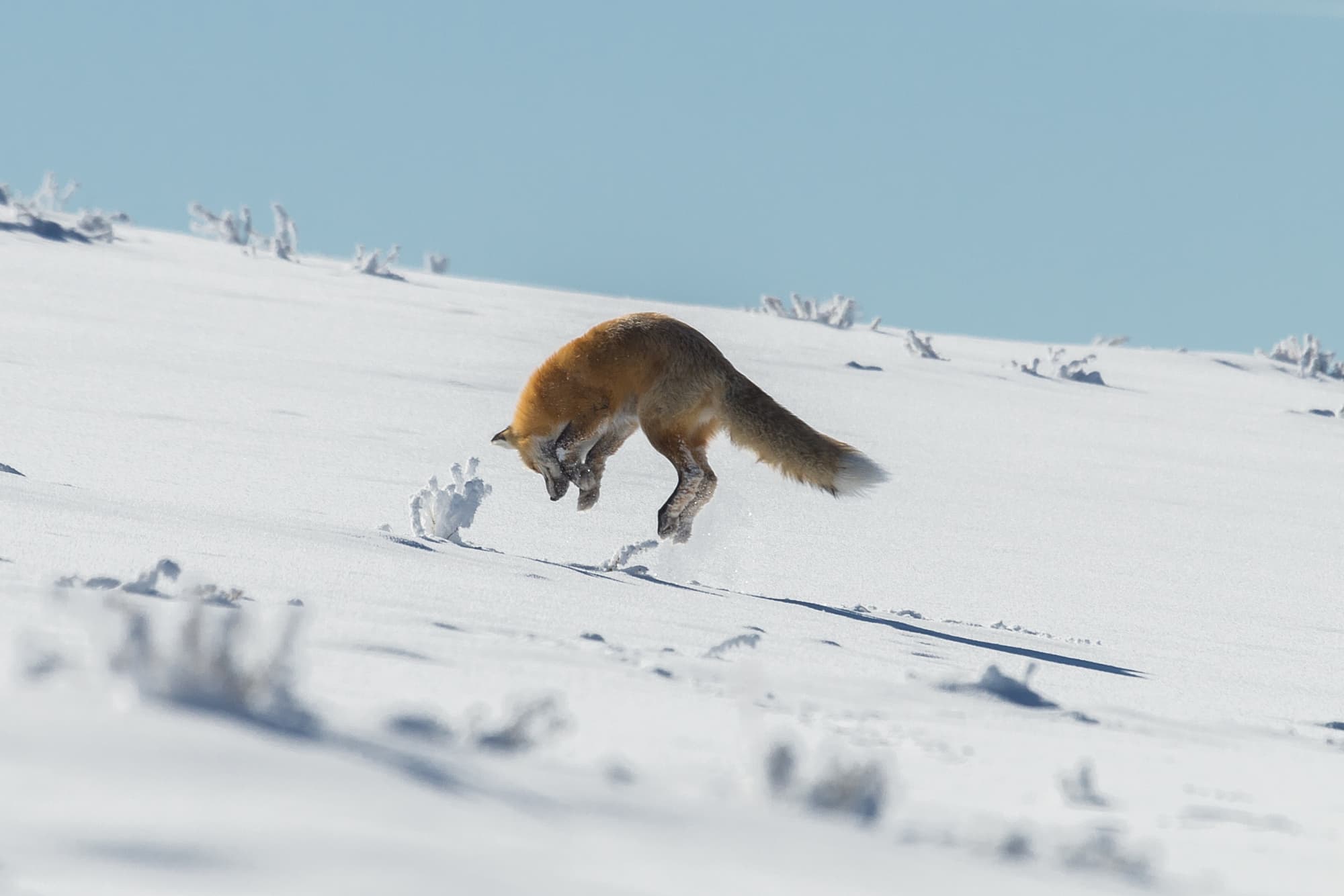 Auch den Fuchs hat sich das Team um Hynek Burda vorgenommen. Laut seiner Untersuchung sollen Füchse die Erdmagnetfeldlinien nutzen, um ihren Abstand zu Beutetieren abzuschätzen. Ihr Magnetsinn, mit dem sie den örtlichen Winkel der Magnetfeldlinien zum Erdboden zu erkennen scheinen, helfe den Tieren möglicherweise dabei, sich vor dem finalen Angriffssprung in die immer gleiche Position zu manövrieren. Denn der Jagderfolg von Füchsen steht und fällt mit ihrem Anflugskurs - zu diesem Schluss kamen die Forscher anhand von Felddaten, die sie über zweieinhalb Jahre beim Beobachten von Rotfüchsen gesammelt hatten. Die penible Auswertung ihrer Daten zeigte, dass Füchse nicht nur bevorzugt in Nordostrichtung abspringen, sondern dann auch signifikant häufiger eine angesprungene Beute überwältigen. Wenn die Hypothesen der Forscher zutreffen, wäre der Fuchs das erste Tier, das Magnetfelder nicht zur Richtungs-, sondern zur Entfernungsmessung nutzt.