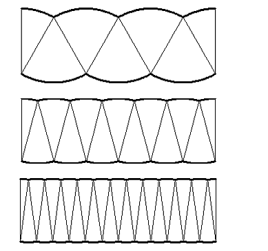Bei seinen Berechnungen von \(\pi\) geht Zu Chongzhi vom regelmäßigen Sechseck aus, dessen Umfang dreimal so groß ist wie der Durchmesser (Länge der längeren Diagonalen); dann wird die Anzahl der Ecken schrittweise verdoppelt.